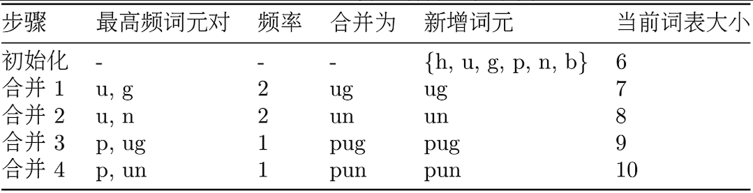 - 重复:重复第 2 步,直到词表大小达到预设的阈值。